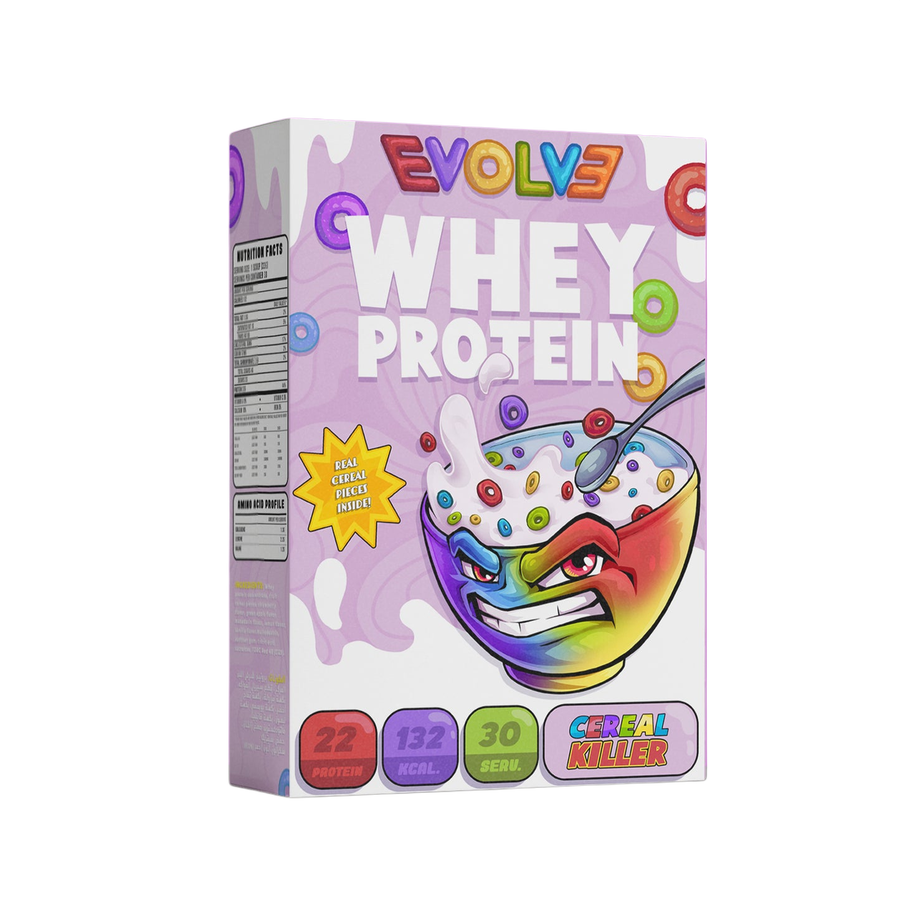 يُعد Evolve Whey Protein بنكهة Cereal Killer مكملاً غذائياً مصرياً شهيراً، يتميز باحتوائه على قطع حبوب حقيقية (Cereal) داخل المسحوق، مما يمنحه قواماً مقرمشاً وطعماً يشبه وجبة الإفطار التقليدية.